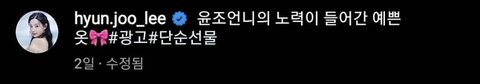 어제까지는 몰랐는데 현주 관련 유튜브를 보다가 댓글에 ‘이현주님, 뒷광고를 더 하셨더라고요? 왜 2일전에 또 다른 게시물 수정하셨어요?’라는 걸 보고 ‘설마…’라는 마음으로 찾아보니까 진짜 또 다른게시물들을 수정했더라고… 하… 왜 자꾸 니 팬들을 실망시키는거니..