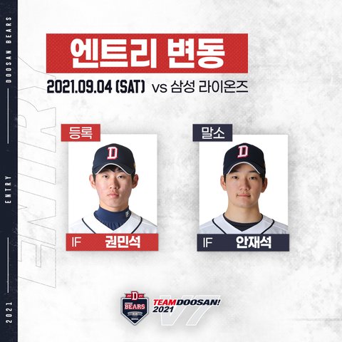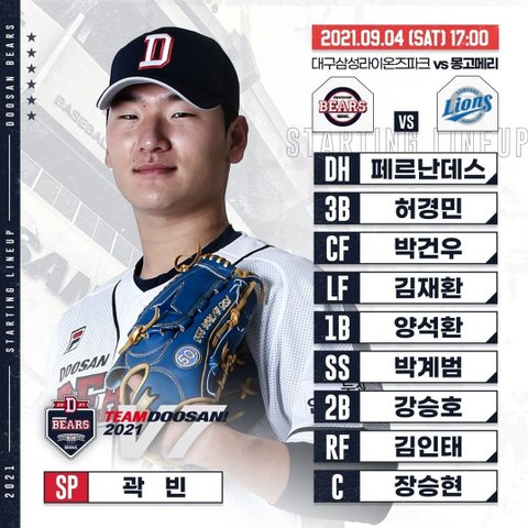 9. 4 두산 베어스 라인업 + 엔트리 변동