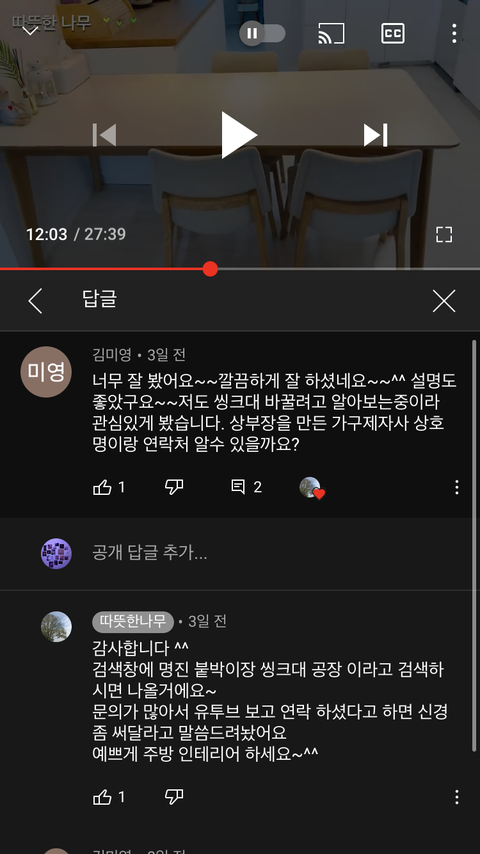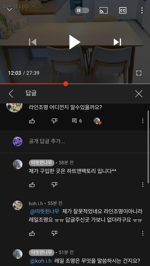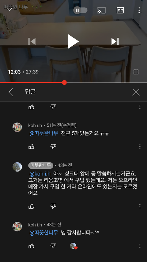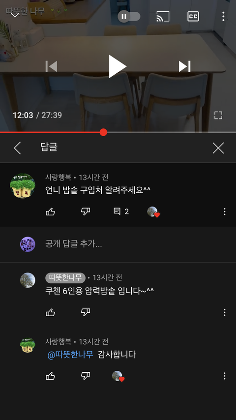 보면 나이가 있으신 분들이 꽤 댓글을 많이달고.. 사실 영상보면 다 있는 정보들도 댓글로 엄청 물어보셔.. 그래도 따뜻한 나무는 따뜻하게 답변해준댜!!!!!