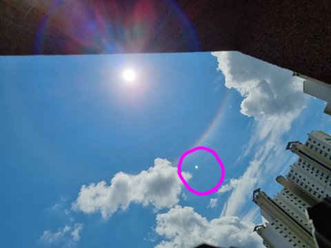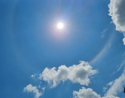 태양주위에 무지개를 보고 찍었는 사진 여러장에 작은 불빛? 작은 점이 이동하여 나타나 확인하고자 올려봅니다. 혹시 보시고 무지개옆에 있는 점을 무어라고 생각하면 좋을까요? 많은 의견 댓글 부탁드립니다. (대구시 달서구 송현동 앞산 밑) 같이 보신분 계실까요? ㅎ