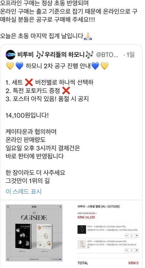 오늘 온라인 구매는 총공팀 공.구만! 반영됨!
