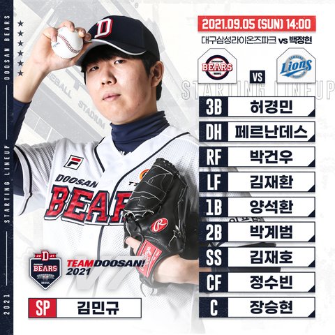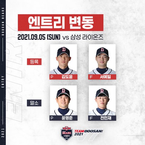9. 5 두산베어스 엔트리 변동 + 라인업
