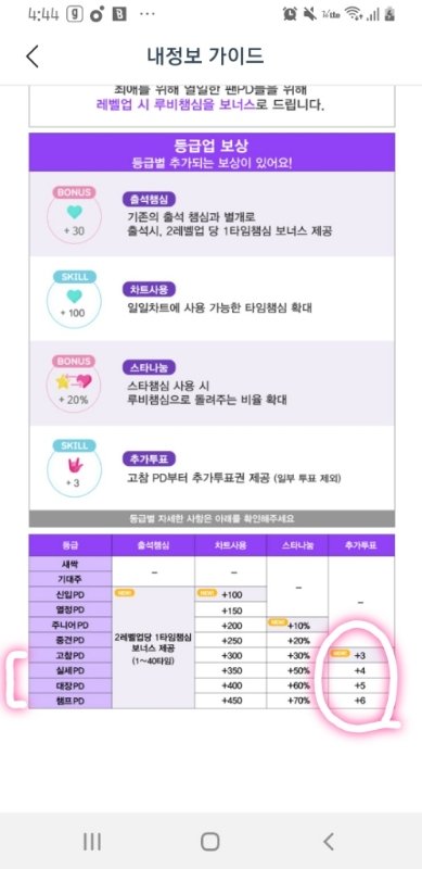 위 표에 나와있다싶이 고참 PD 레벨부터 투표권 3개 더 준당. 최대한 높은 레벨일수록 나중에 좋아