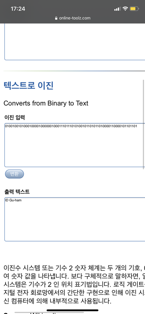 스밍팀 이진법 올린 거 봐 ㅋㅋㅋㅋ