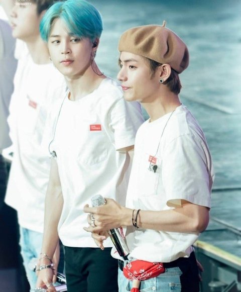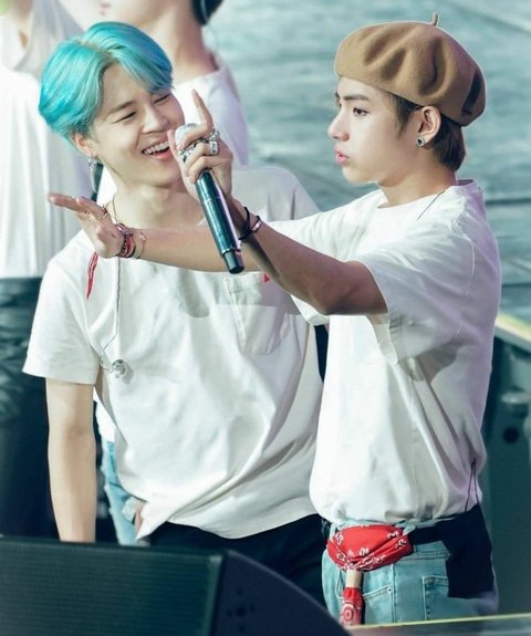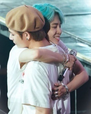 울고 있는 태형이 보고 웃으며 꼬옥 안아주는 지민이