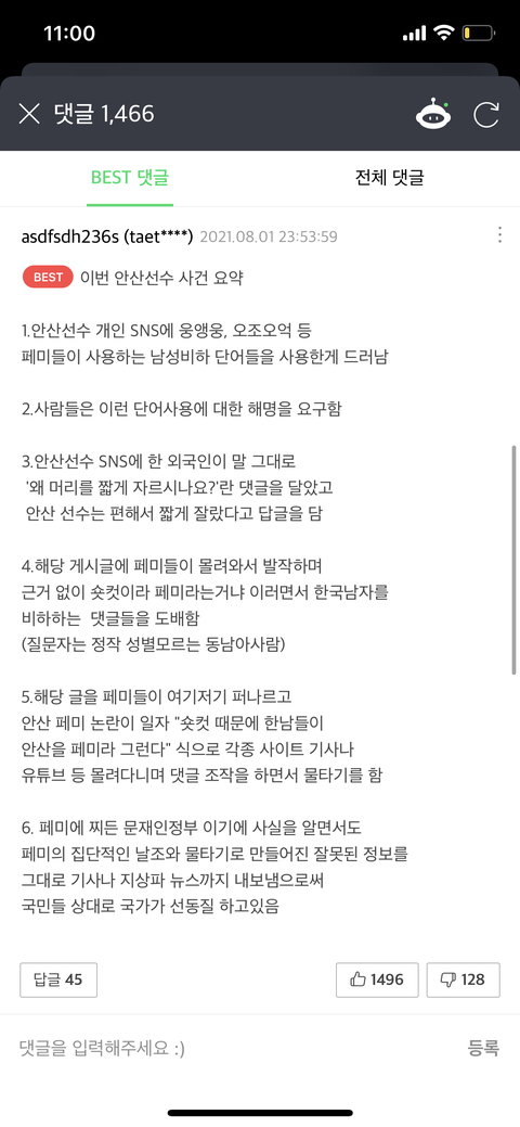 난 페미에 관심 없고 오히려 급진적인 페미 싫어하는 사람인데 웹툰 댓글 왜 이러냐 진심 ;; 이 웹툰 재밌는데 댓글만 보면 그냥 개빡침 이상한 논리로 내 생각도 이상하게 동화될 것 같아서 댓글 잘 안 보는데 오늘 이거보고 충격 받았다;;