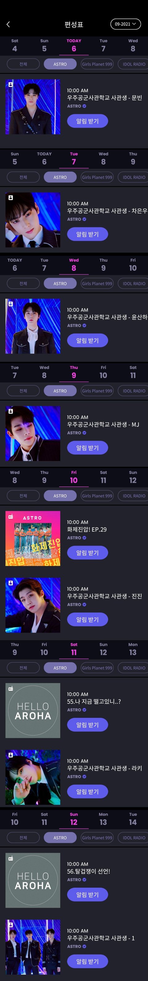9월 둘째 주 유니버스 편성표