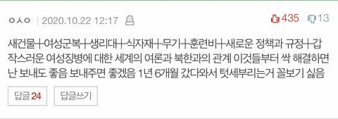 이런것도 못해줄거면서 여성징병제 ㅇㅈㄹ하는 한남들ㅋㅋㅋㅋㅋ