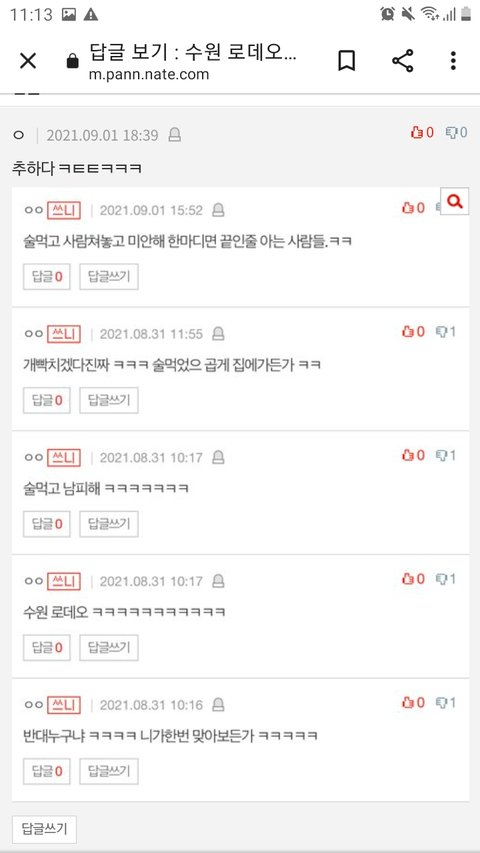 수원 댓글에.추하다 댓글단늠 ㅋㅋㅋ