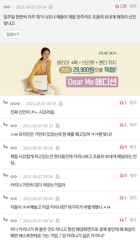 같은날 아니고 한달 차이고 해바라기옷 닝닝도 입는건데 (에스파는 서로 옷 돌려입음) 그런 해명 보지도 않음