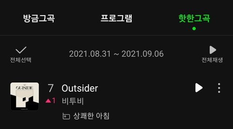 방송 선곡 순위 어제보다 한등수 오름 !!