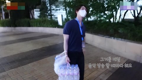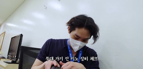 음악방송 현장 도착해서도 계속 일하면서