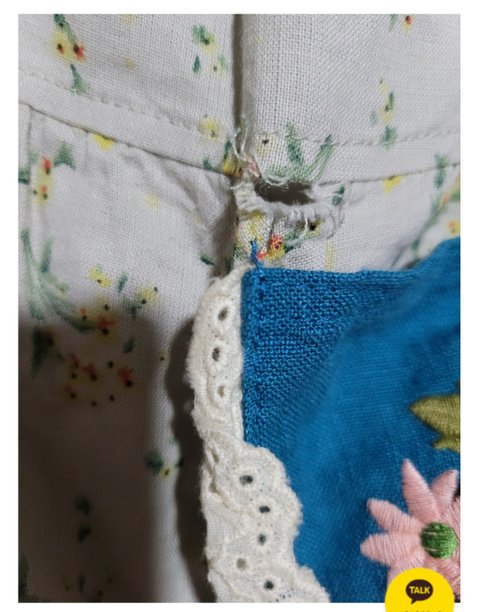 월요일, 화요일 컨디션 회복이 힘들어 아이 등원후 약먹고 이틀을 내리 자고 어제 화요일밤( 9월 7일 ) 아이 재워놓고 그냥 입어야나 하는 생각에 개봉했는데 주머니 윗쪽 원피스의 상하 절개 재봉부분이 구멍이 나있더라구요.