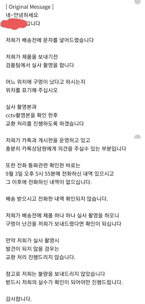 저에게 떠넘기려는듯한 저 확언으로 인해 저는 진상이 된것같아 몹시 불쾌해서 글 남겨봅니다.