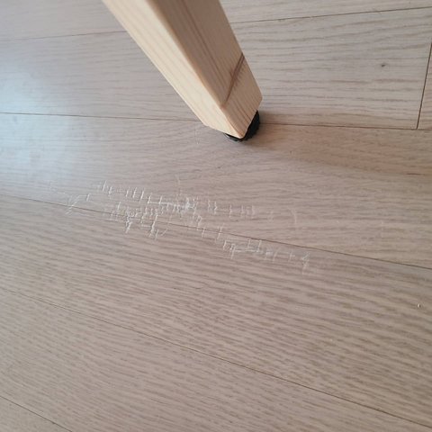 "고객님이 침대를 끌어서 생긴 자국이니 배상할수 업습니다"