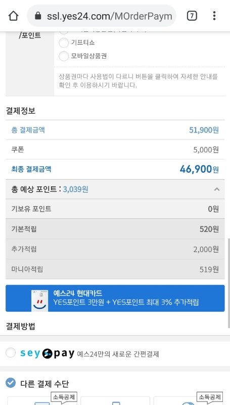 할인쿠폰 5천원 + 적립금 3천원 +카카오페이결제 3천원 할인 총 40900원 예사에서 사셈