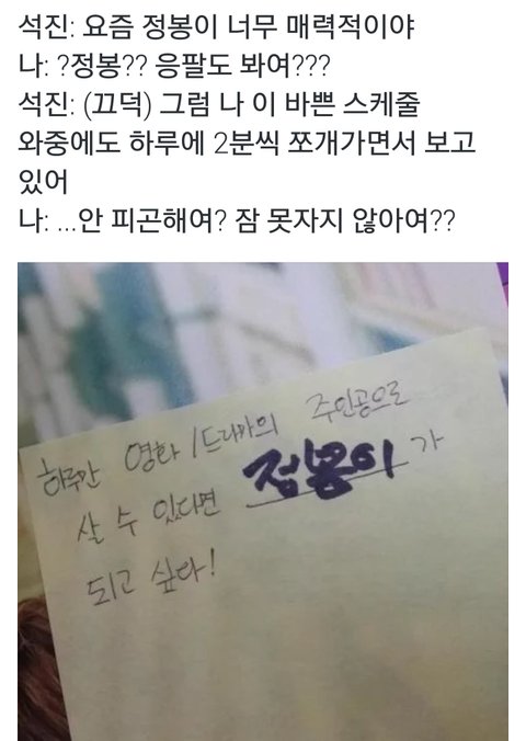 설레는 남주 필요없고 정봉이 하고 싶어하는거 귀여워 ㅠ