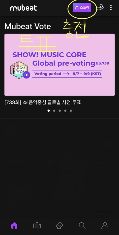 어플 '뮤빗' 홈화면에서 음.중 글로벌 사전투표!