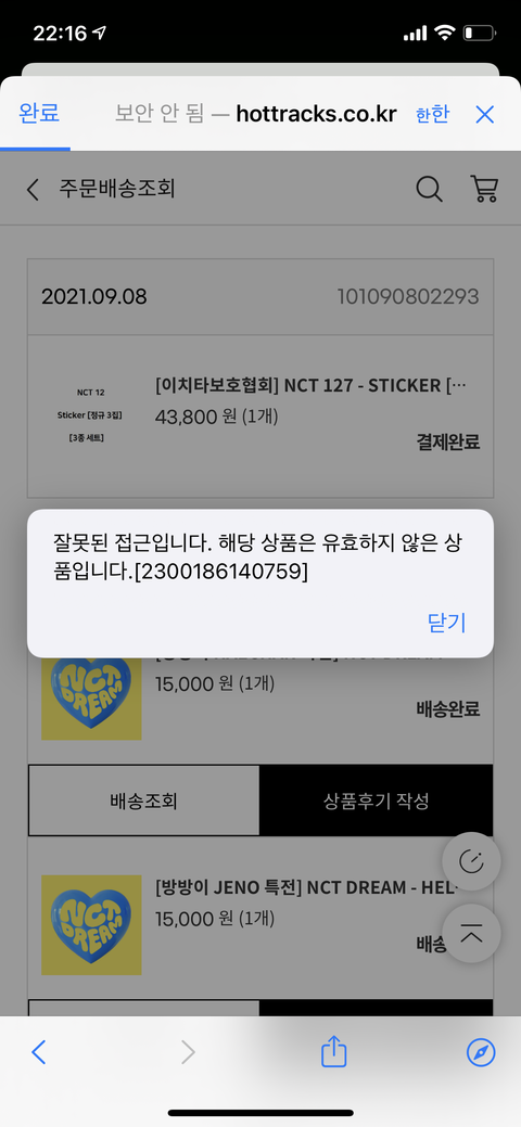 방금 이보협에서 샀는데 저 주문한거 클릭하니까 이렇게 뜸