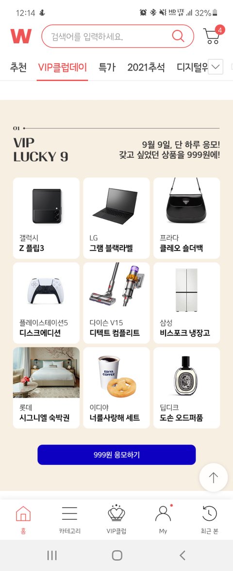 9/9 갤럭시 Z플립3 999원 위메프 럭키드로우