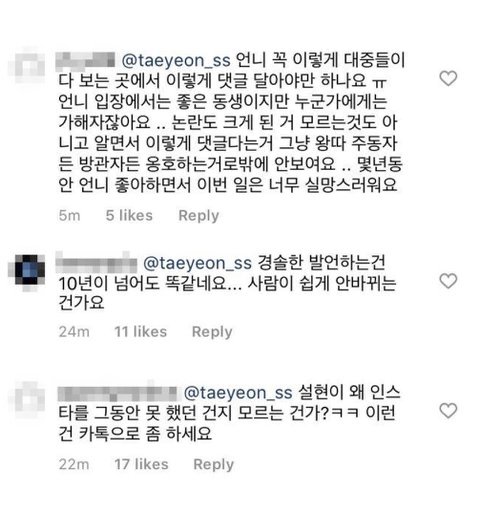 설현한테 선플 단 청아 태연 ㅈㄴ 욕 먹은 거 아냐