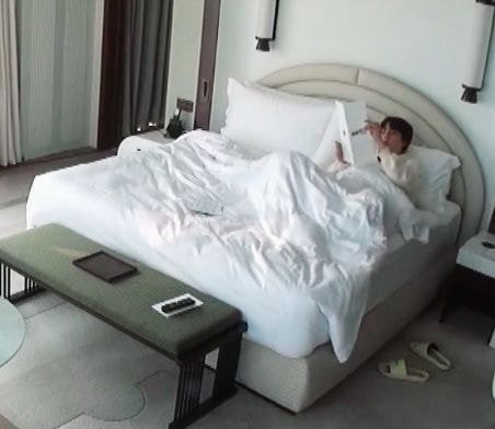 : 혼자 침대에 누워계심 ㅋㅋㅋ