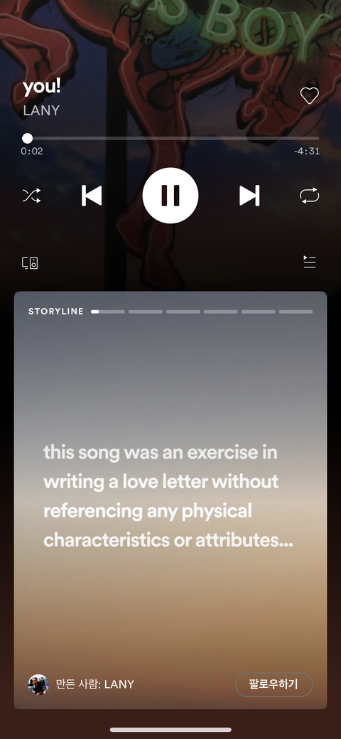 이런식으로 밑에 곡에관한 이야기 써있네 인스타스토리마냥 누르면넘어가