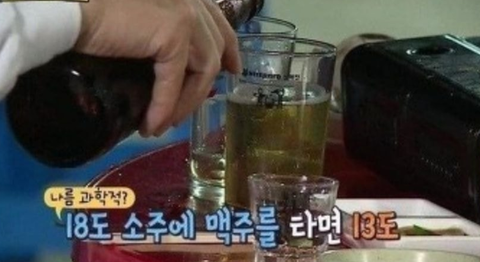 "요렇게 폭탄주를 만들어 먹으면 비슷한 농도가 되니까...."
