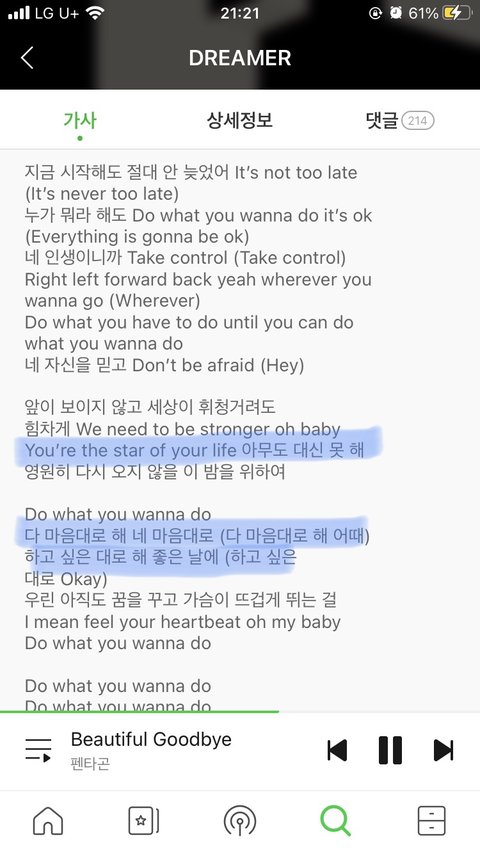 이제 원서접수 기간이어서 하루하루 자존감이 낮아지는 중이거든요..ㅠㅠ 이번 노래 뿐만 아니라 괜찮아요 그려본다 등 많은 노래로 위로받아서 한번쯤 말씀드리고 싶었어요