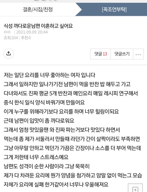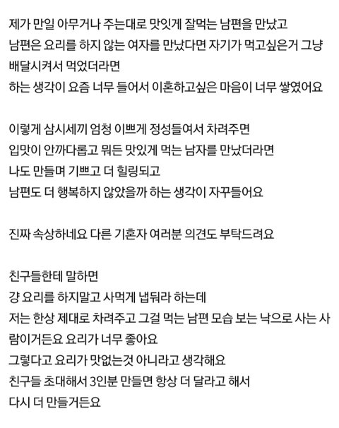 (원본지킴) 식성 까다로운 남편 이혼하고 싶어요