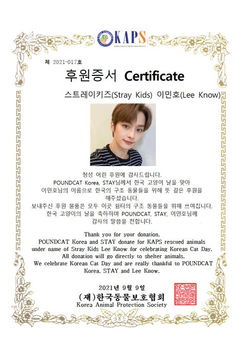 리노 뱃지로 인한 스테이 수입금으로 고양이의 날 기념해서 리노 이름으로 기부되었대!저번에 하신 약속 지키신것 같아ㅠㅠ