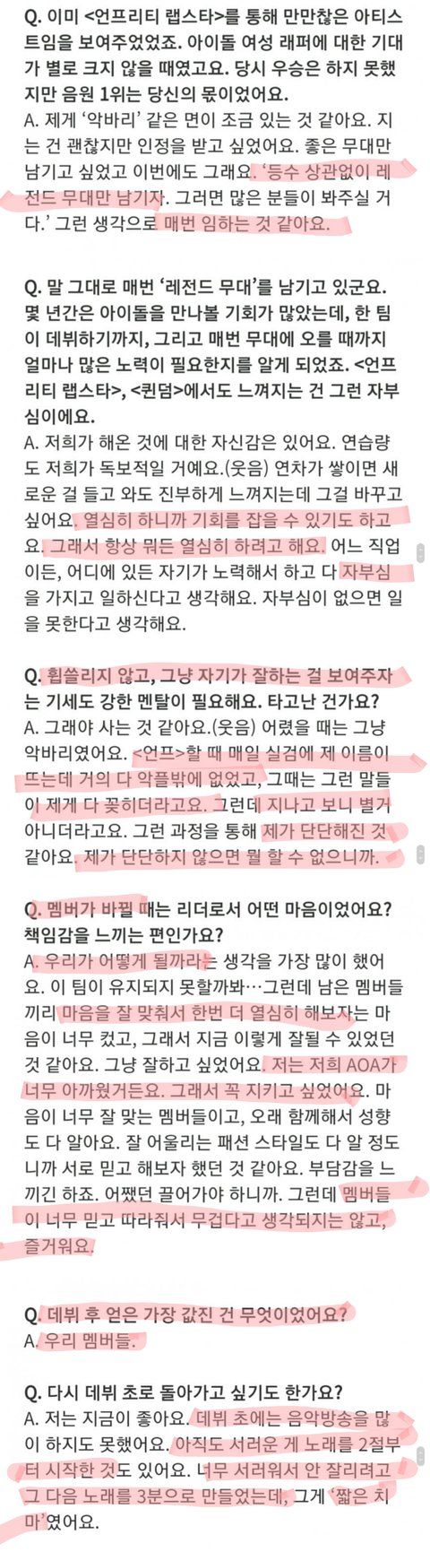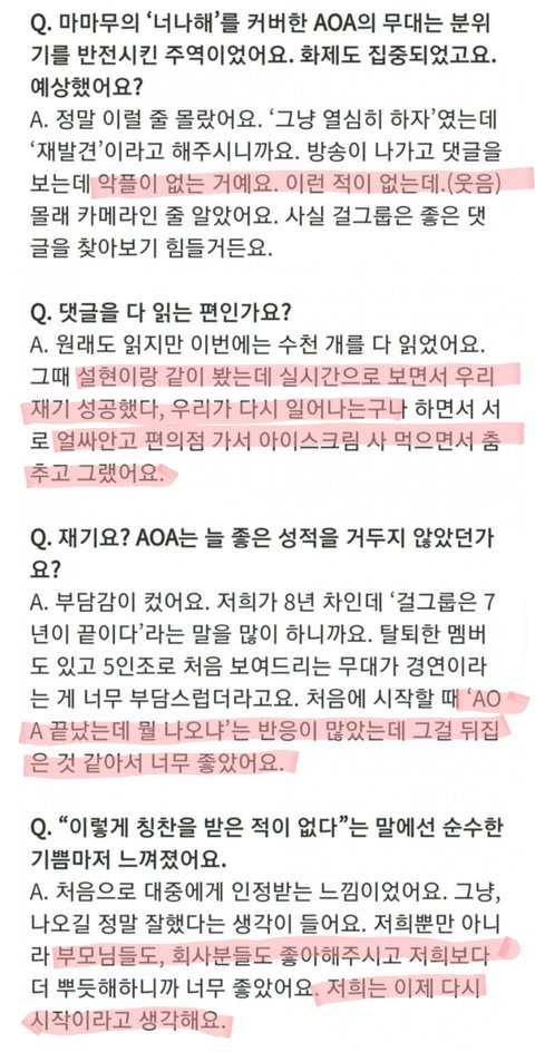 그냥 잘하고 싶었어요. 저는 저희 AOA가 너무 아까웠거든요. 그래서 꼭 지키고 싶었어요.