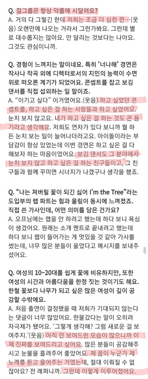 (멤버 변동 후) 우리가 어떻게 될까라는 생각을 가장 많이 했어요.