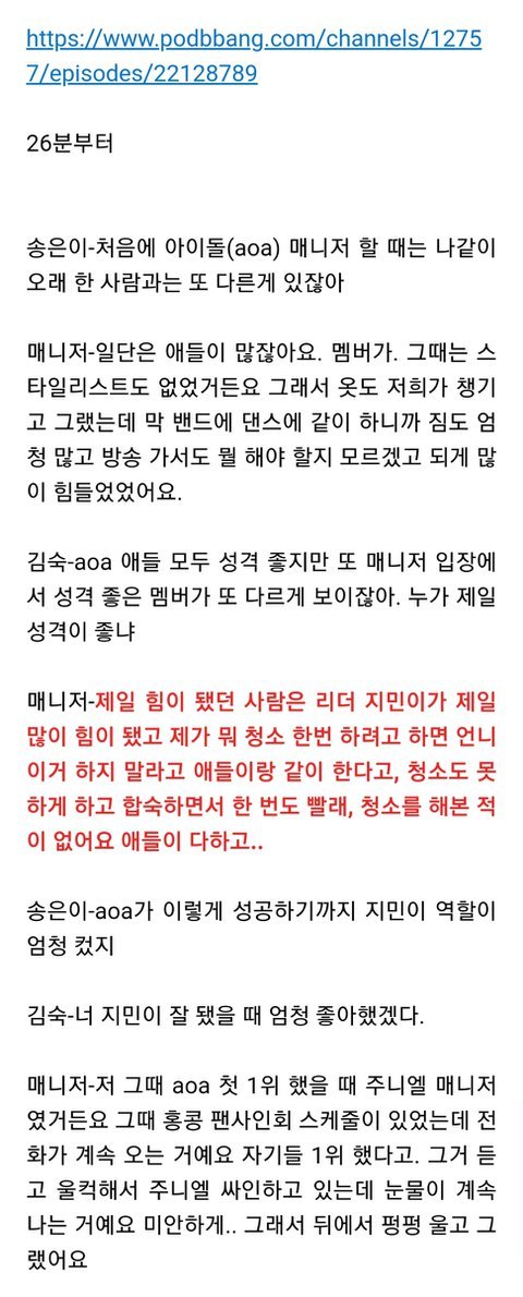 데뷔 후 얻은 가장 값진게 멤버들이래...진짜 맘아파 분명 aoa 잘 되는거 배아파서 그런거 확실함 아오진짜