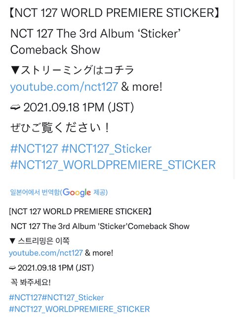 18일 1시 컴백쇼