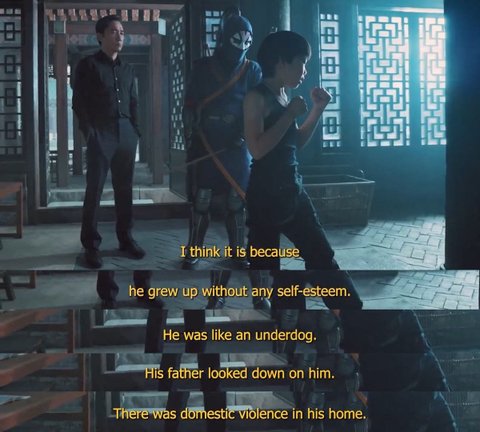 웬우는 좋지 않은 가정환경(=가정폭력이 있던 집)에서 자랐기 때문에
