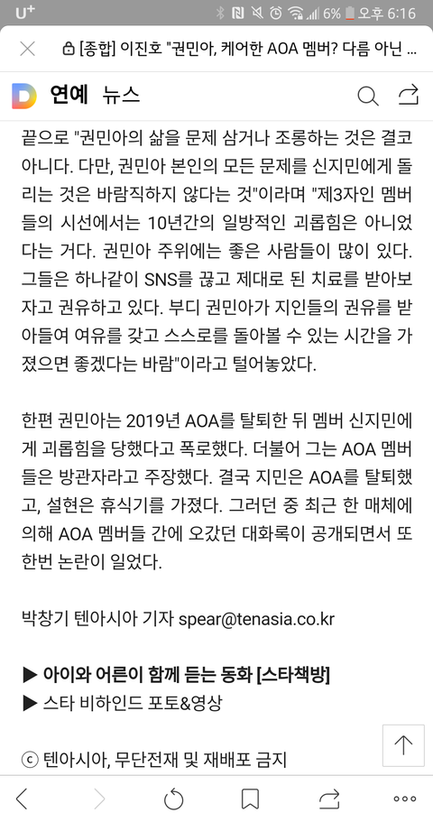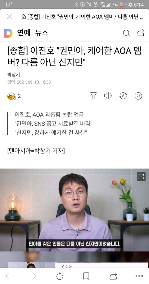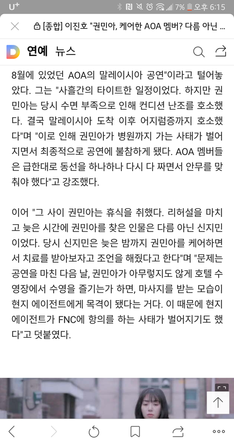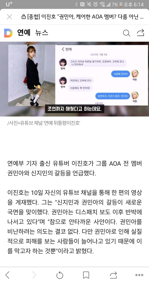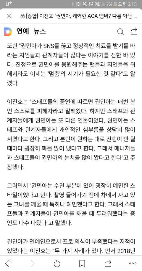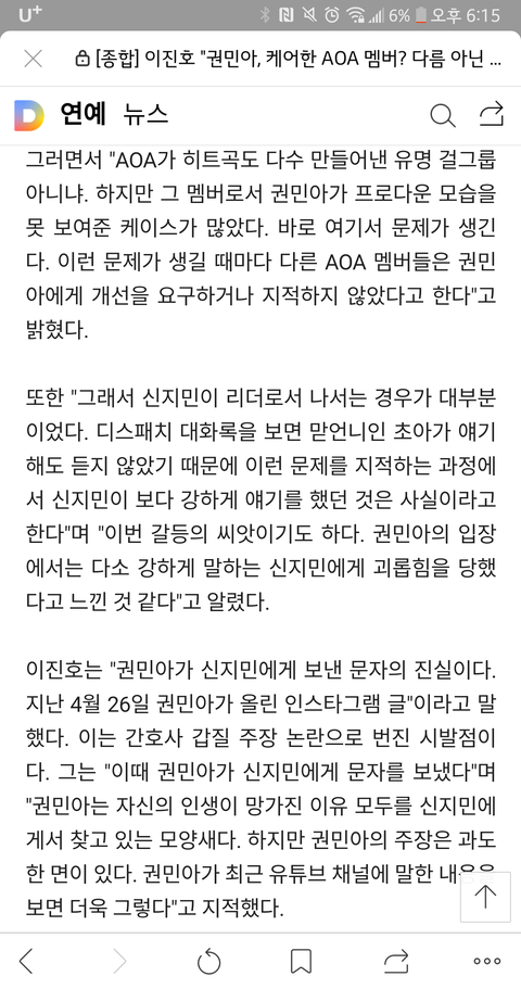 근데 이런 사람도 좋게 보이진 않음. 내둥 가만히 aoa활동 정지되고 욕 왕창먹고 죽이네살리네 소리 들을동안 뭐하다가 이제와서..? 진작 좀 나서서 말해주지. 이제와서 그때는 이랬네저랬네 하면 뭘함.