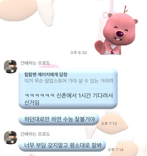 +이건 걍 후기(?) 아닌 후기… 하 이렇게 된 이상 수능 잘 봐야 될 거 같음 갑자기 떨리네 무튼 별 생각 없이 자랑하고 싶어서 올렸는데 댓글 많이 달아줘서 다들 고마워!!! 그리고 오빠 원래 서울쪽 많이 돌아다녀서 굿즈나 먹을 거 가끔 사다주는 편이야 나도 생각날 때마다 깊티나 선물 챙겨주고 암튼 그렇당