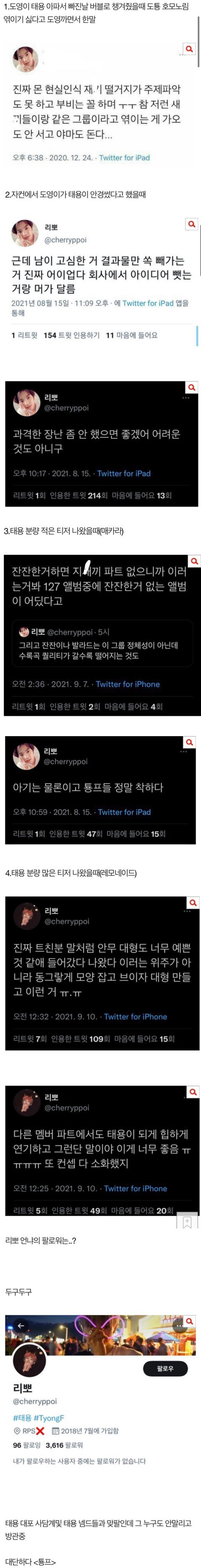 태용이 팬들에겐 너무나 마음아픈 장면인데 이렇게 거짓선동하면 기분 좋니? 사이코패쓰 같은 것