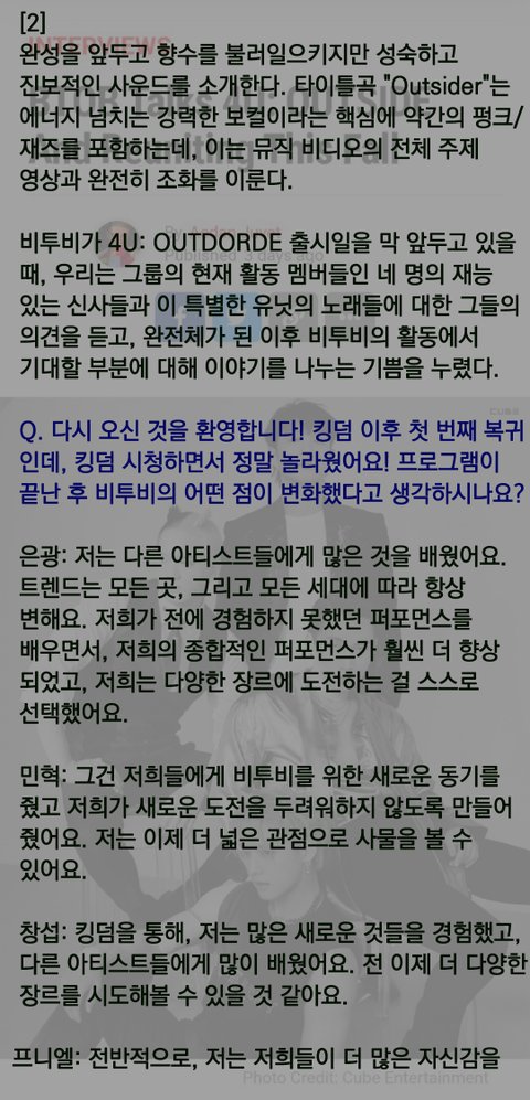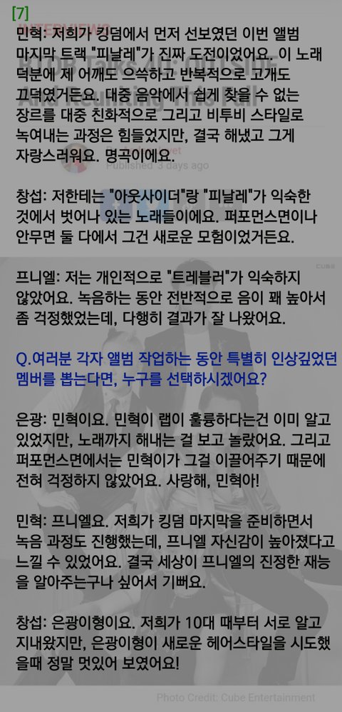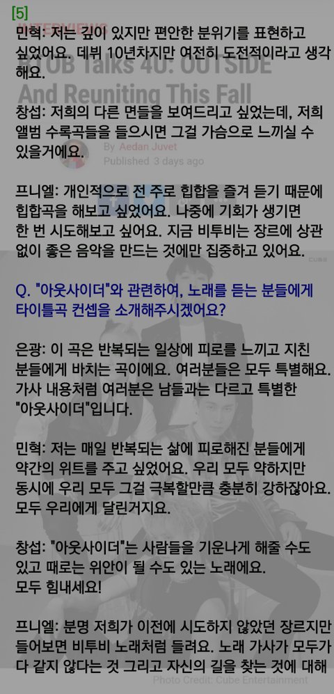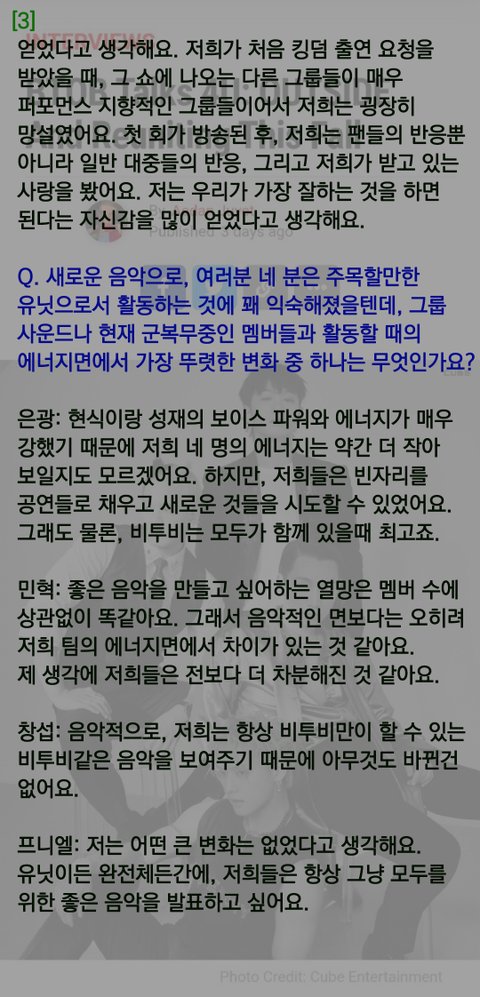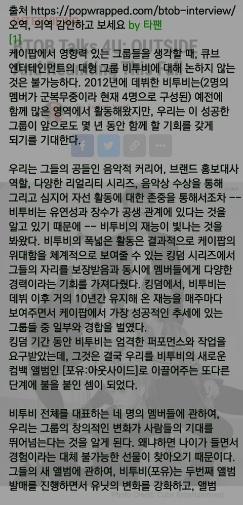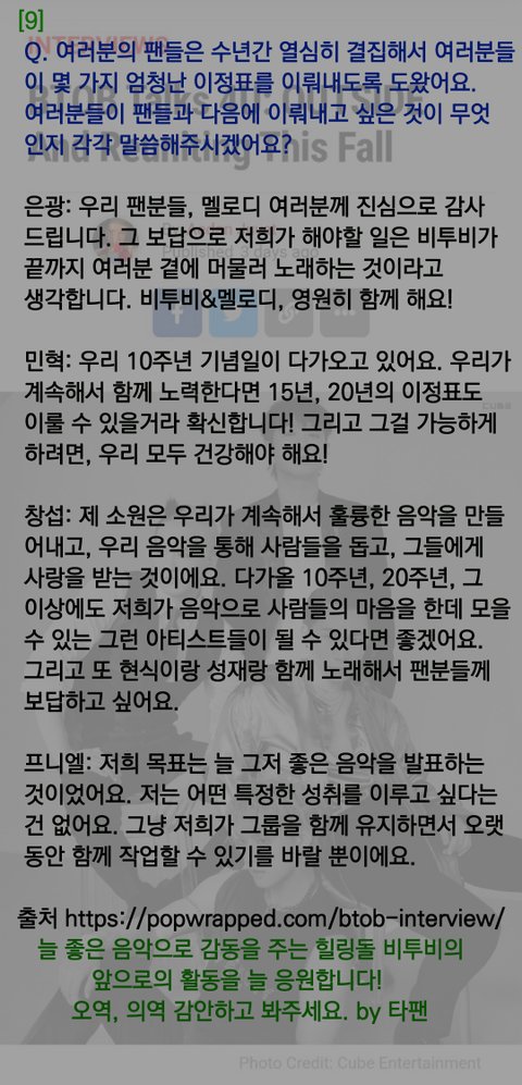 전에 어떤 분이 번역해달라고 글 올리신걸 봤는데 출처 https://popwrapped.com/btob-interview/
