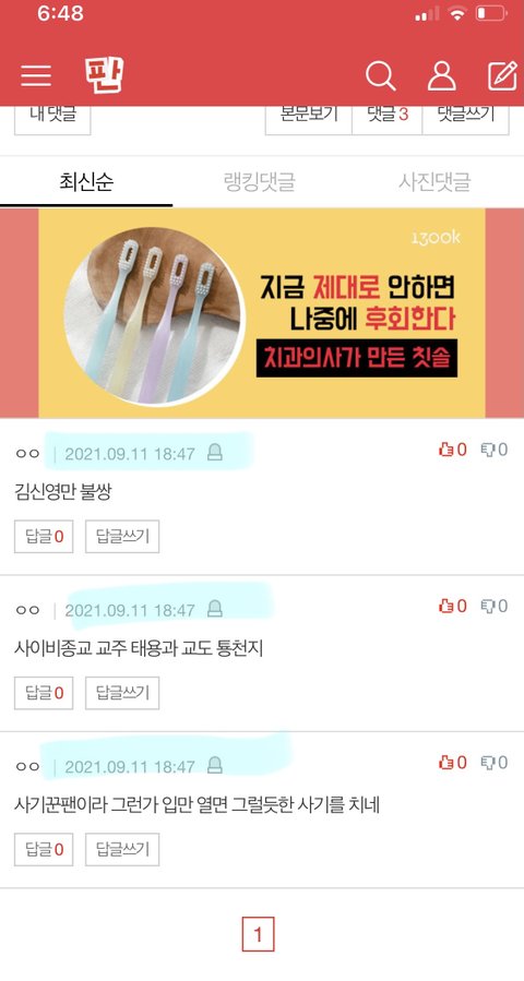 댓글 또 구라 쉴드 달림