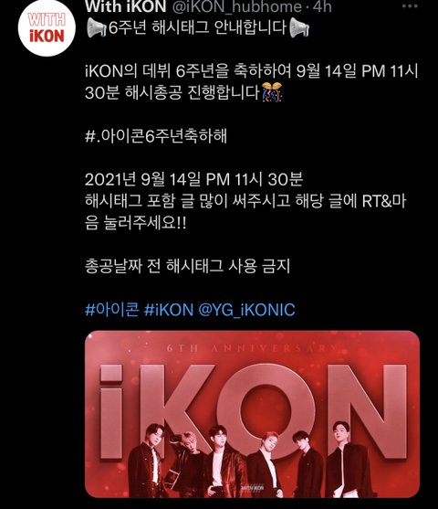 9월 14일 아이콘 6주년 해시총공 도와주세염