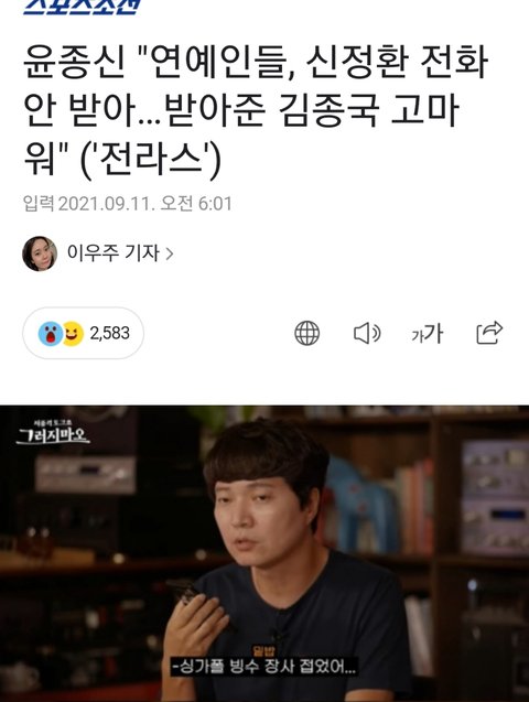 이번에 이런 기사가 네이버 1위를 함. 덕분에 김종국은 범죄자의 친분 거론되면서 커뮤와 네이트 기사댓글에서 욕먹음