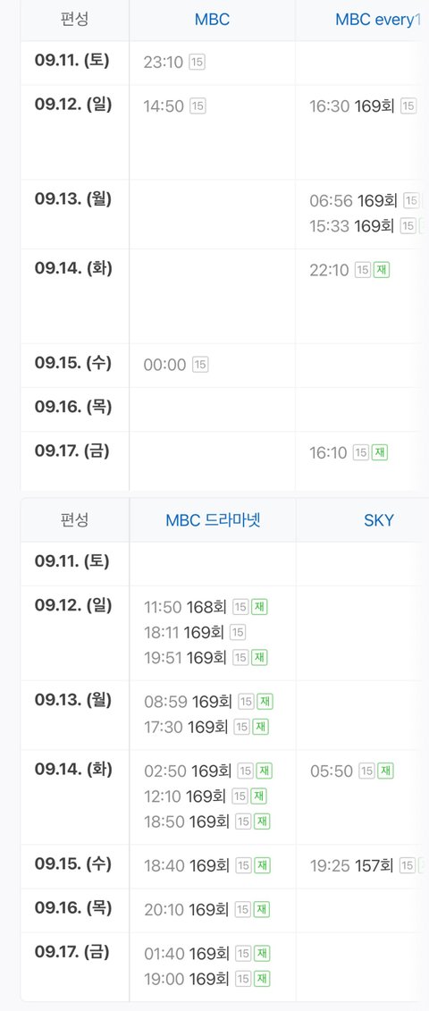 근데 편성표시간은 바뀌는 경우도 있으니까 확인해줘