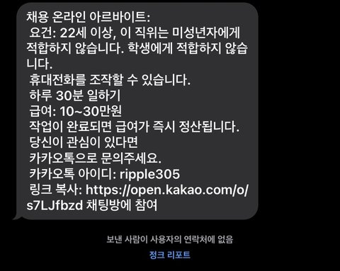 문자로 이상한 아르바이트 문자왔는데