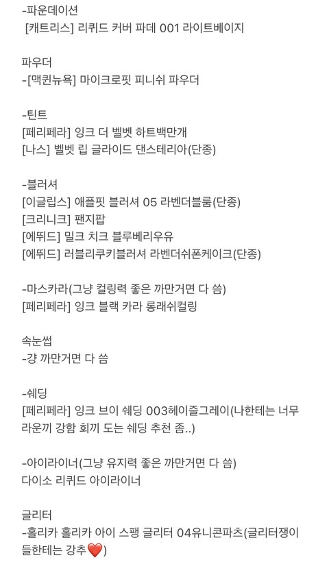 색깔이 너무 한정적이야 새까만 블랙 연보라블러셔 핫핑크립 조금이라도 웜끼 돈다 하면 얼굴이 급 누래짐..