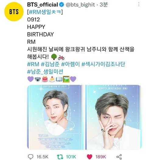 김남준 생일 추카해!!!!!