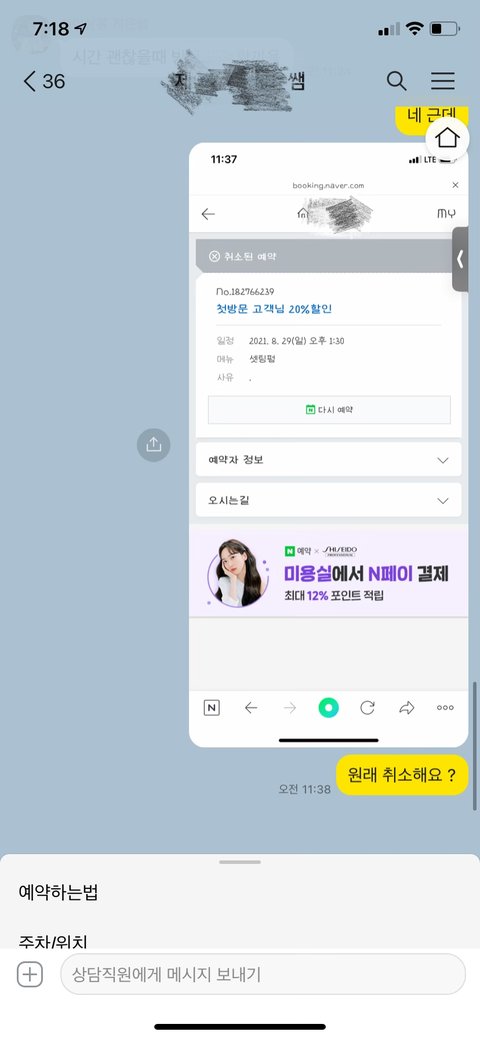 본인이 보기에도 망했다 생각하셨는지 손수 예약취소까지 하시구요~답안하길래 전화로 물어보니 실수?ㅋㅋ 취소사유까지 써놓고 실수가 가능하냐니 자기가 안그랬다고 잡아때는 책임감없으신분ㅎㅎ리뷰 안좋게쓸건 아셨나보져?!