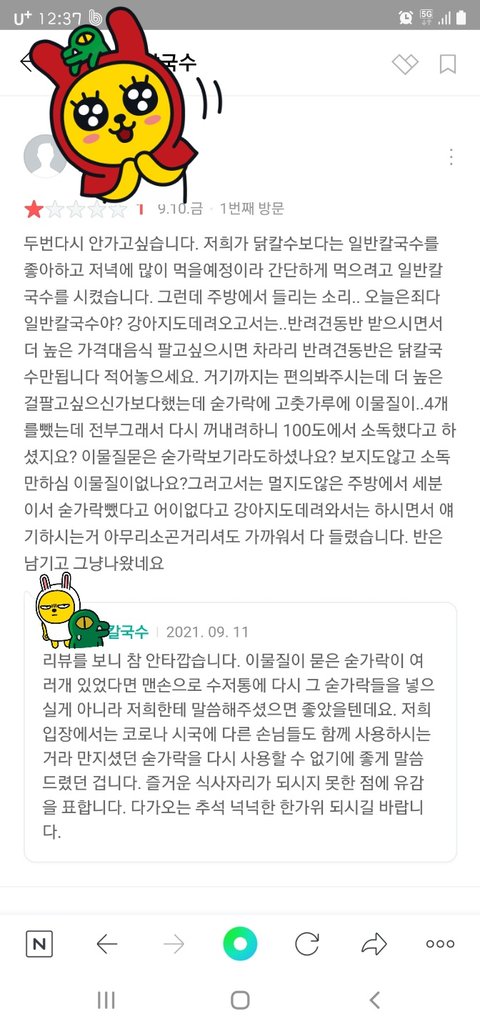 일반칼국수 시켰더니 짜증내셨다고ㅋㅋㅋ