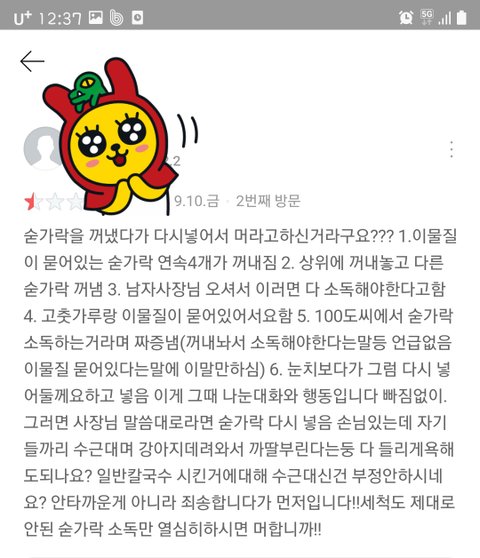 일반칼국수 시켰다며 계속 수근거림